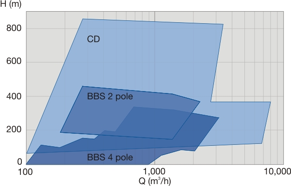 產(chǎn)品性能 流量:~2000m3/h 揚程:~760m 介質(zhì)溫度(T):-80℃≤T<+450℃ 壓力:單級泵5.0Mpa, 雙級泵11.0Mpa 設計標準:API610